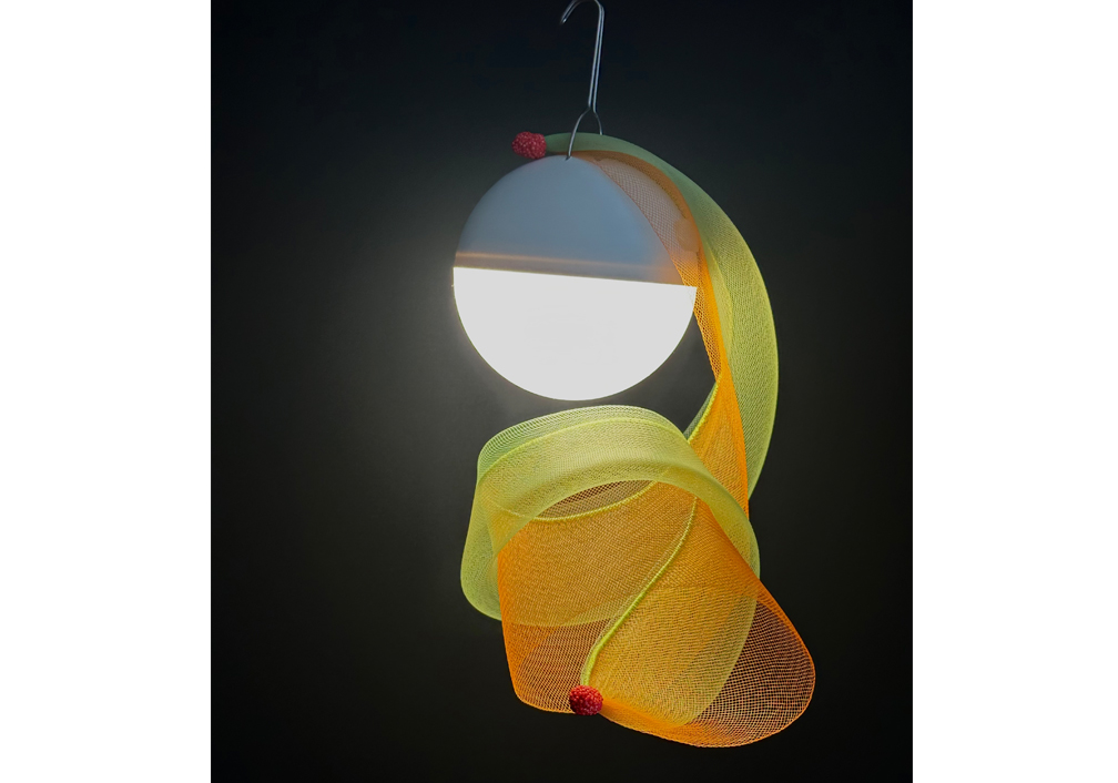 They are not lanterns, but entities permeated by light. A warm beam supports a phantom-like headdress. Three spheres throb on collars made of different materials. Light doesn’t illuminate: it grazes, reveals and lingers.
