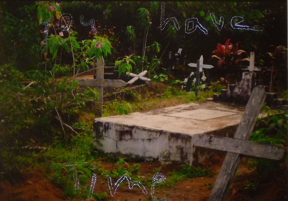 Light boxes with police station mirrors contain family pictures which the artist uses to explore appearances and the influences that play a role in shaping our personalities.