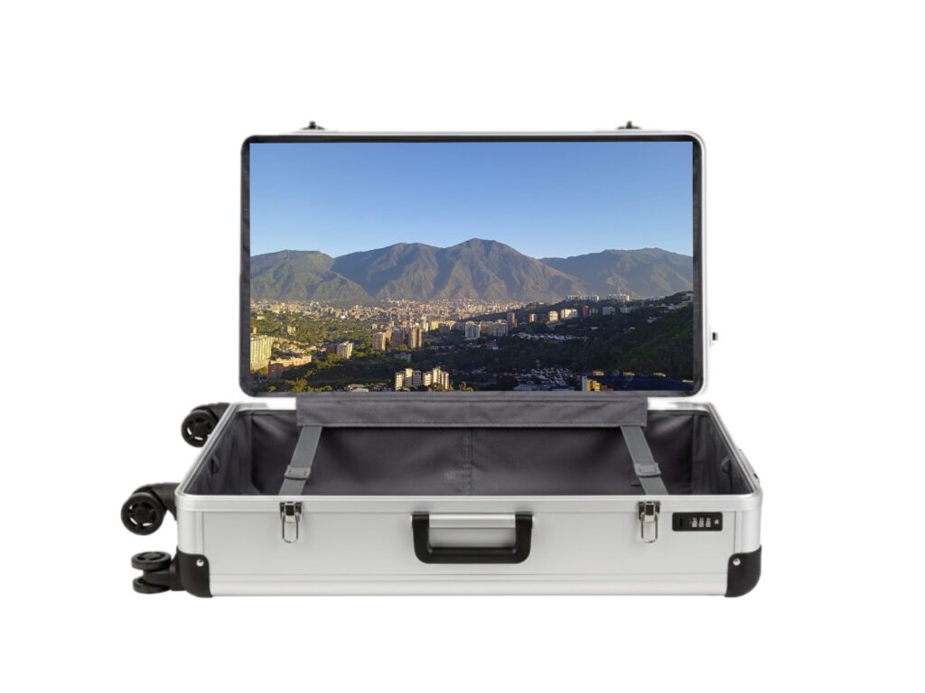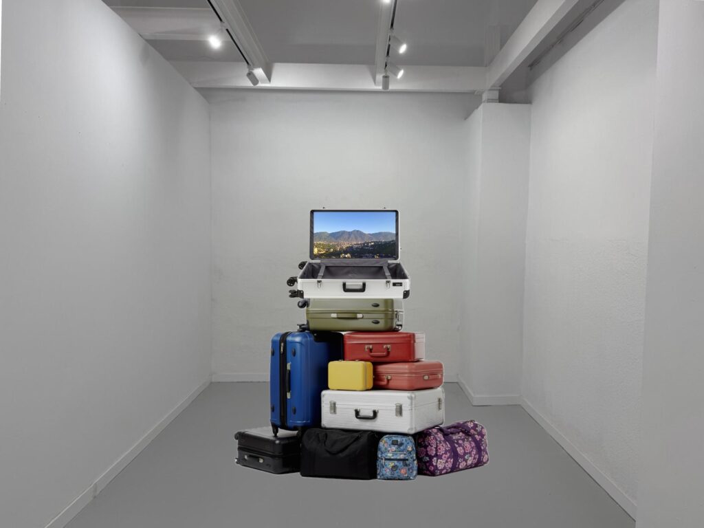 Una instalación que reflexiona sobre la luz como agente de transformación. Concebida específicamente para Marquesa Gallery, trabaja en dos ejes conceptuales: la Topografía del desplazamiento —manifestada por la acumulación de maletas que representa el éxodo venezolano— y el Umbral como ventana —con la luz del amanecer expresando la luminosidad del porvenir desde una de esas maletas—. Un ejemplo del trabajo del artista multidisciplinar venezolano-peruano residente en Madrid Marcos Temoche, cuya práctica explora la construcción de la identidad como un proceso en constante flujo, directamente influenciado por los fenómenos migratorios, la diáspora y la herencia cultural.