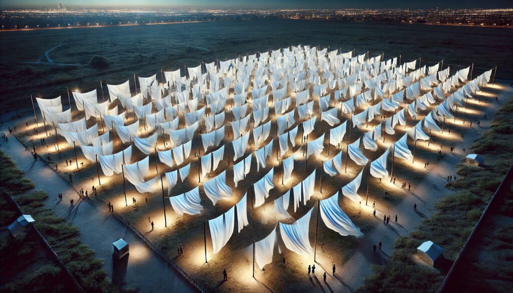 PAISAJES TENDIDOS [Intervención bajamente tecnológica hecha con tela blanca, viento, luz y olor a limpio]