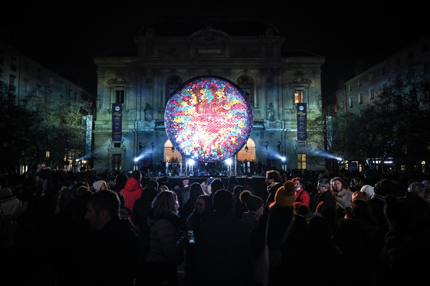 Soleil Nuit, Persée es tanto una obra escultórica que juega con la luz ambiental como un dispositivo que proyecta ráfagas de luz coloreada sobre su entorno, llevando al observador a descubrir las vibraciones de una pintura impresionista en una versión cinética. Constituida por dos círculos de aluminio contrapuestos y recubiertos por una malla con 5.000 espejos con distintos tintes, durante el día, es tan cambiante como los rayos que atraviesan las nubes; en la oscuridad, actúa como una estrella radiante. El sol, la noche.